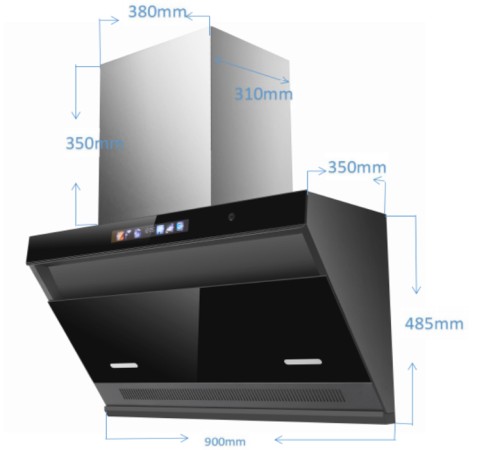 近吸油烟机,厨房壁挂式侧抽油烟机批发,烟机生产工厂C86710电机:32#全封闭电机排风量:≥17±1m³/min 标准风压:440Pa 全压效率:28%(一级能效)噪音:≤69dB(A声功能级) 烟管口径:¢180mm净重:18.5Kg 毛重:22Kg 开关:智能小智语音触摸开关 机身:冷板喷涂美的灰机身尺寸:900×350×485mm 围板尺寸:380×310×350mm纸箱尺寸:960×48