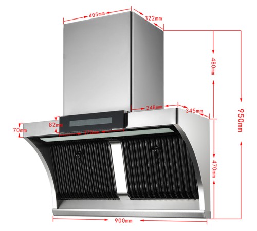CXW-300-007 (货号:007油烟分离直流)使用电源:220V/50Hz额定输入总功率(W):238爆炒功率(W):300W风量:23.05立方米/分钟全压效率:26.9(能效一级)标准风压(Pa):700.48最大静压(Pa):971.42温升:60K噪音(dB):69除油功率:65W(国标900长,带温控100宽,中间U形孔照明:长条LED灯(≤5W)外形尺寸(mm):宽895*深33
