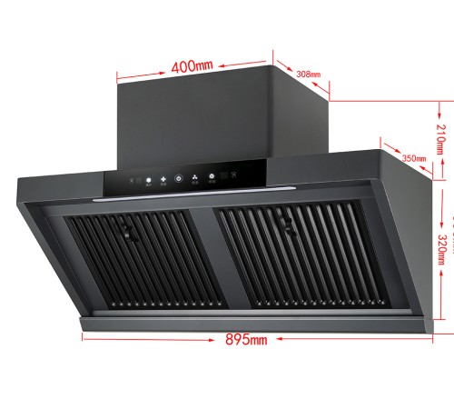 箱体油杯:喷涂云米灰箱体开关:触摸+体感电机:32叠三速能效铁壳电机油网:三层油烟分离网;出风口:180mm烟管:180×1.8米铝箔黑+旋转扣额定输入总功率(W):268能效:一级;标准静压(Pa):366排风量:16.5m³/min;最大静压(Pa):465除油功率:65W照明功率:≤5W机身尺寸(mm):宽895×深350×高556净重:18.5kg毛重:22.5kg建议零售价格:1950元