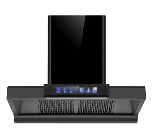黑色油烟机,厨房欧式油烟机上吸上排风烟机特点:1、外观:整机外观高端大气、纳米不粘油涂层,拉伸面板、双层油烟过滤网、一体机设计。 2、整机不粘油、易清洁。清洁一抹即净,大幅度减少清洁用时,打理更加省心省力。 3、配置快速热溶油技术:快速清除油脂,风柜不积油、搭配36叠高效3速电机、厨心所欲。 4、全新图腾炫彩式全屏开关、简约、大方、整合时尚与科技之美! 5、屏下隐藏式LED冷光灯,柔和不刺眼、照明