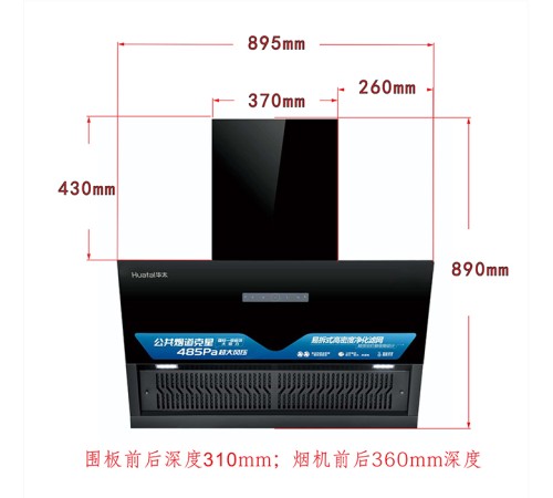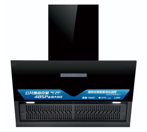 近吸式油烟机,厨房侧吸抽油烟机特点:侧式全黑机身与钢化玻璃结合、整体不粘油纳米喷涂处理、双层多净化油网、易清洗、易维修、大玻璃可拉开、配置语音播报、煤气检测功能、电热加清洗、大屏开关、一级能效电机、外观时尚大气、高雅风格、油网易拆设计。货号:C851A电机:28#全封闭一级能效电机排风量:≥17±1m3/min最大静压:≥400Pa 全压效率:22.3%(二级能效)噪音:≤65dB(A声功能级)出